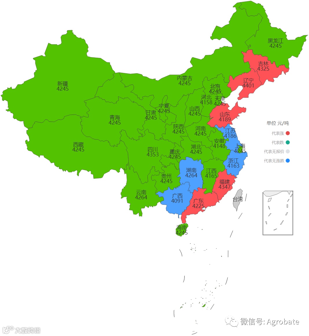 导读:饲料大宗原料玉米豆粕价格,以省为单位,检测价格变动,指导采购决策。