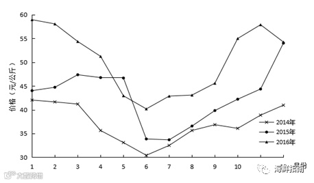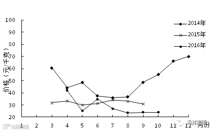 小龙虾的生产供给季节性特征明显,市场价格随上市供给量变化而波动。根据2014-2016年小龙虾批发价格和出塘价格看。近三年小龙虾价格逐年提高,价格呈季节性波动,每年的6-7月上市旺季期间价格最低,春冬季上市淡季期间价格走向峰值。