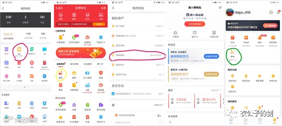 图:京东、微博、滴滴、百度、美团APP中的借款入口(排名不分先后)