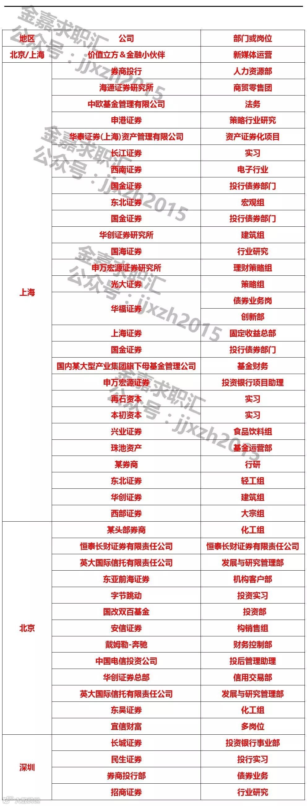 5、有券商投行或资管、律师事务所、信托公司相关实习经历优先考虑;