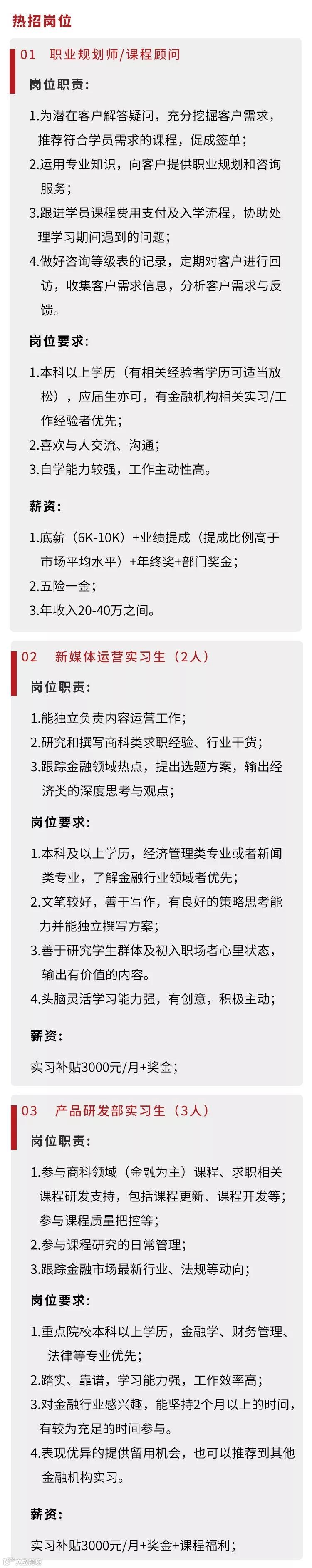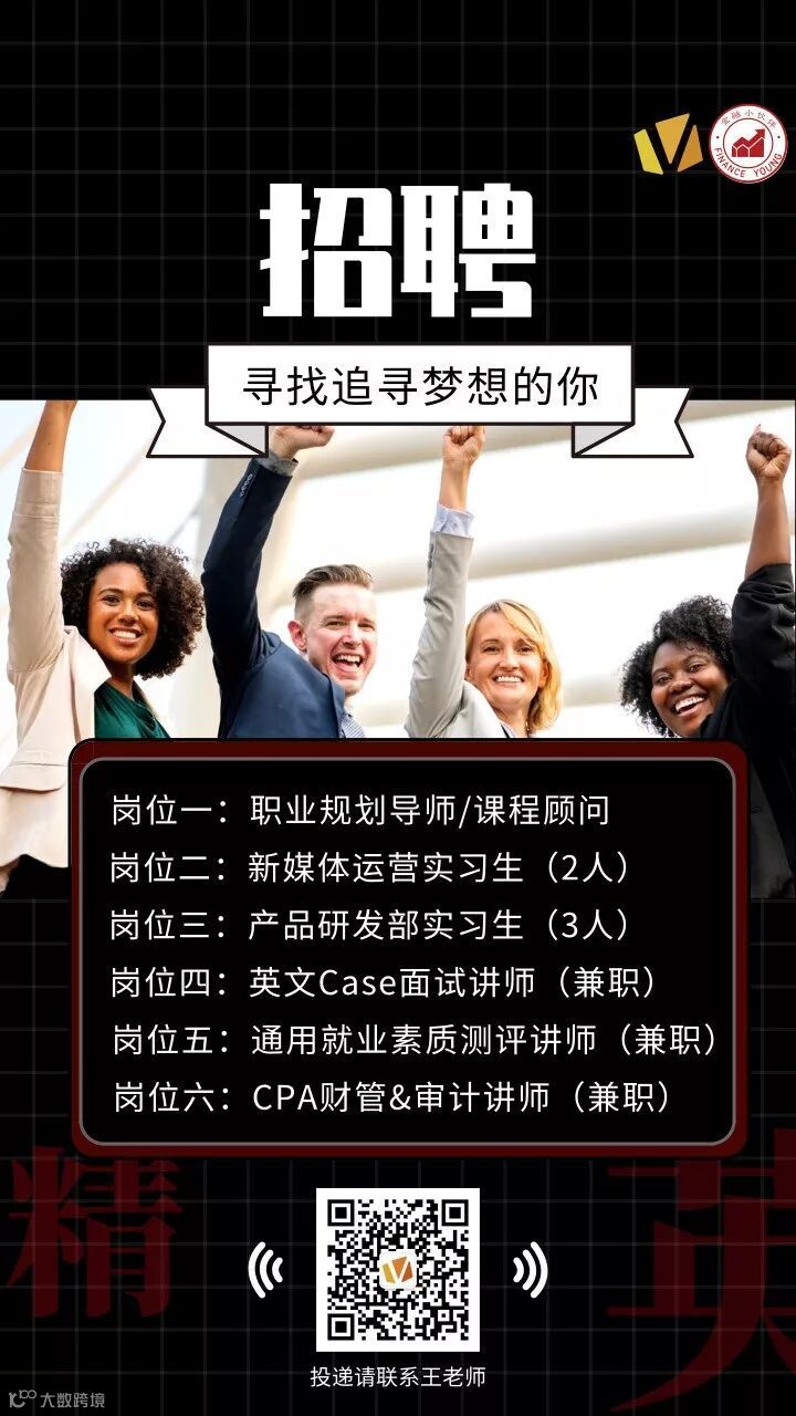 金融小伙伴致力于搭建一个金融垂直领域职业信息分享和交流公益平台,通过持续不断的公众号推文和线上线下活动,提供及时、全面、高效的行业招聘信息和职场提升经验。目前,我们已吸引了超过100万粉丝,在海内外金融学子和在职人士中均享有盛誉。