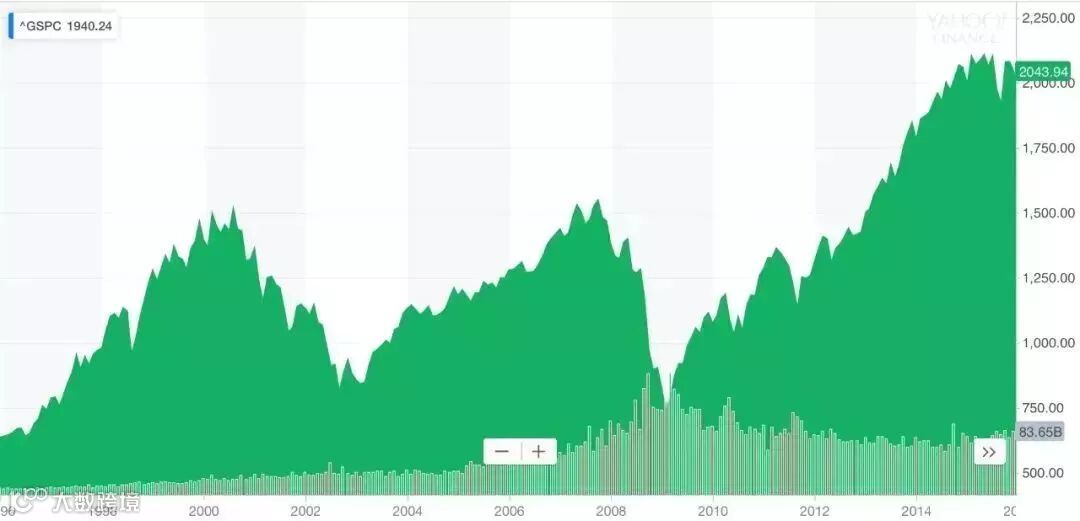同样,如果我们放眼看二级市场,也有类似的现象。我们统计从 1996 到 2015 年美国S&P500 指数这长达二十年的回报,你会发现:
