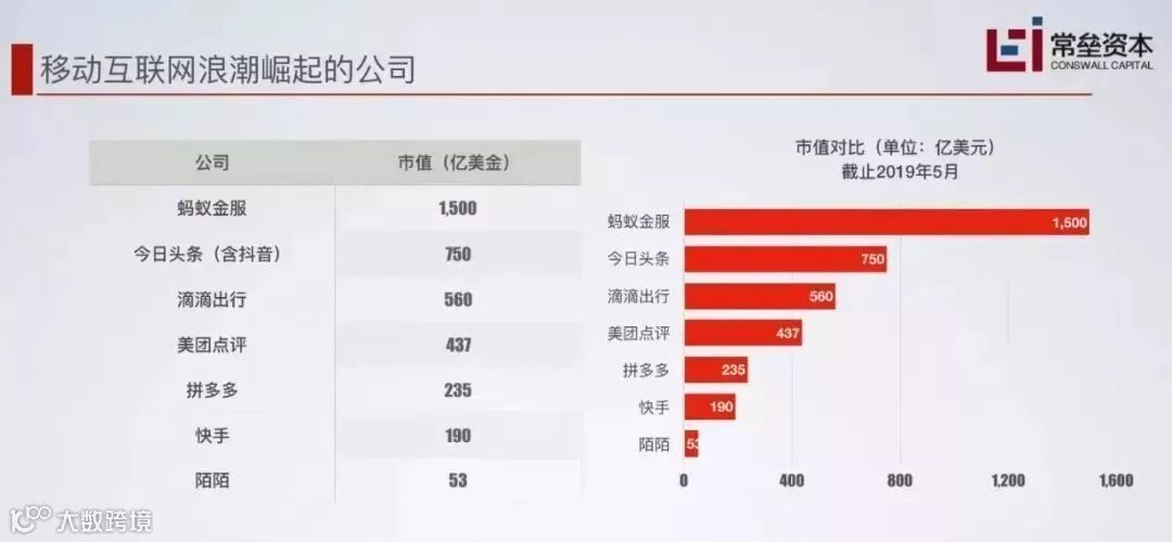 下面这个图展示的是过去几年涌现出的TMT独角兽。它们的出现无一不是赶上了移动互联网的浪潮和红利。