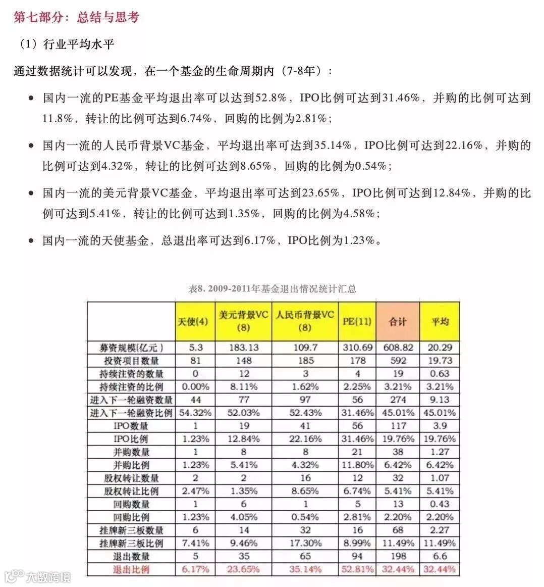 那么如何评价一支VC基金的业绩?据说上面2009-2011年间设立的一支VC基金,在过去8年时间里,LP从1元钱变成了7元钱现金(注意不是账面回报),这简直太优秀了!