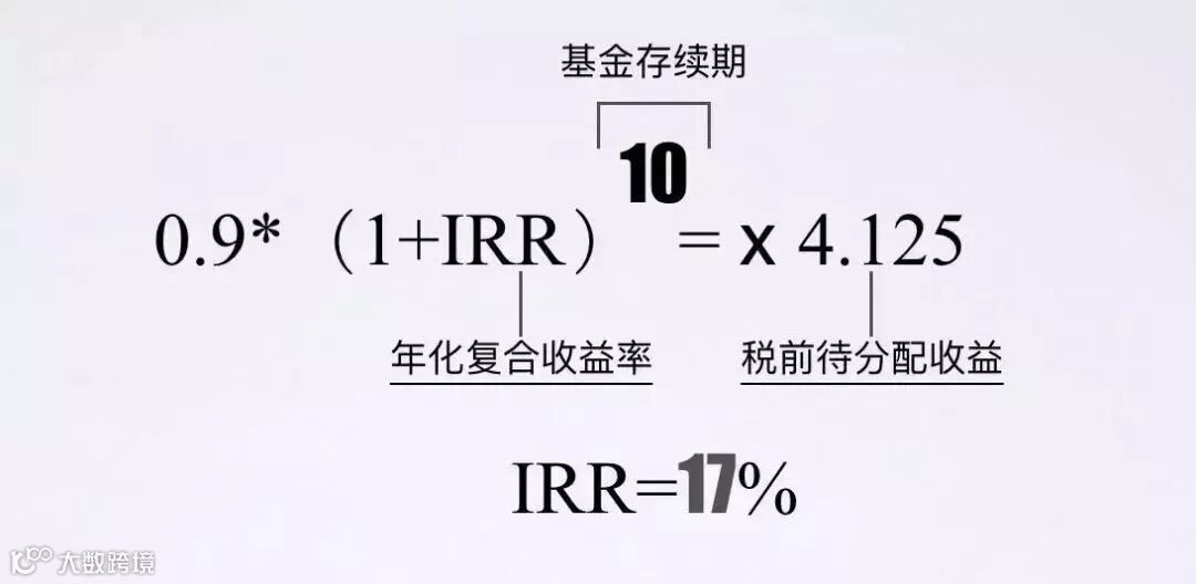 我们粗略估算下:对于LP的1元钱,其实你只有0.9元可以投资,其余0.1元都以管理费的形式进入了管理人的腰包;10年后的3元钱是税后的,而且还要扣除GP管理人的20%carry(这个时候carry终于出现啦!),把税收的因素考虑在内,税前总收益回报要达到4.125元。