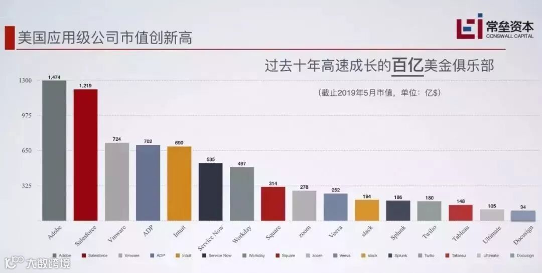 过去十年,技术红利让美国涌现出一大批百亿美金的企业级应用(我不喜欢简单的归纳为SaaS)公司。