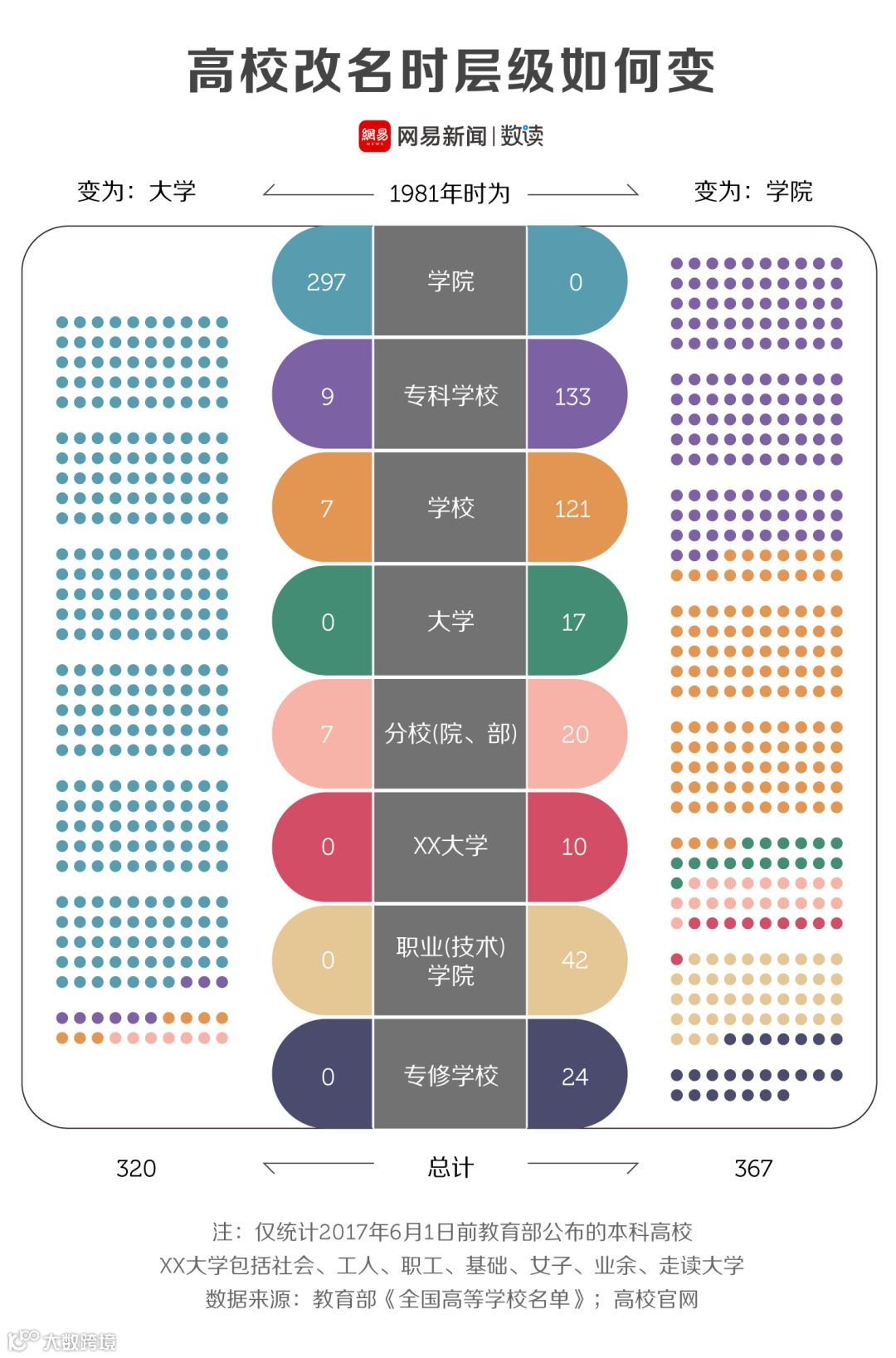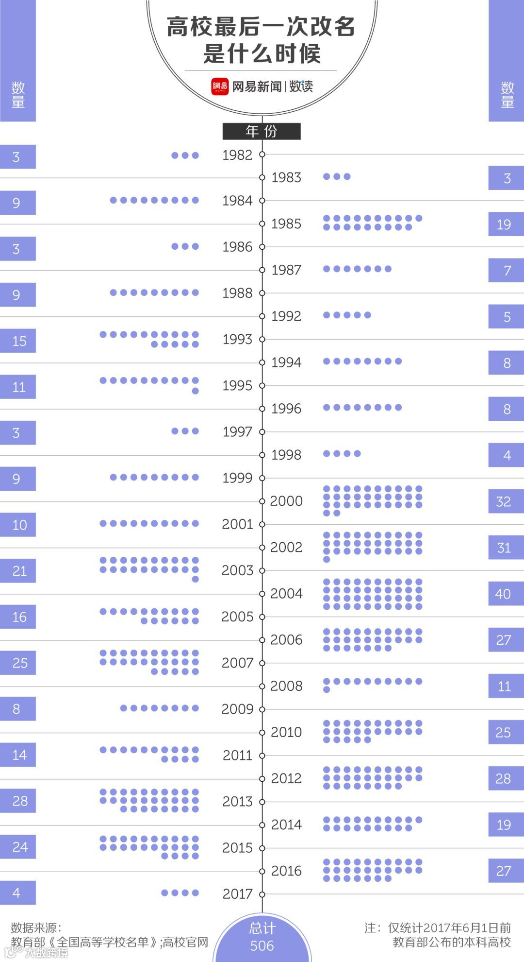 这意味着,从1981年到2017年,仅有125所大学的校名传承至今。