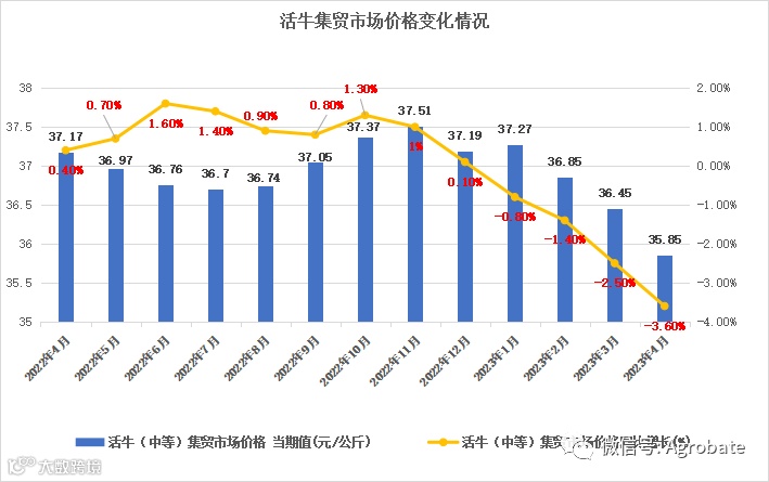 根据农业农村部相关数据,我国集贸市场活牛价格自2023年1月份起连续走低。截至6月5日,已跌至13元/公斤以下。根据中物联食材供应链分会调研,6月份我国部分地区活牛价格已跌至10元/斤上下,且有继续下跌、并将蔓延全国趋势。