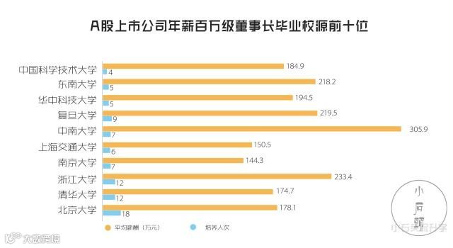 北京大学培养的百万年薪的A股高管共计18位,富豪数量为全国高校之首,清华大学和浙江大学则以12位的高管数量紧随其后。