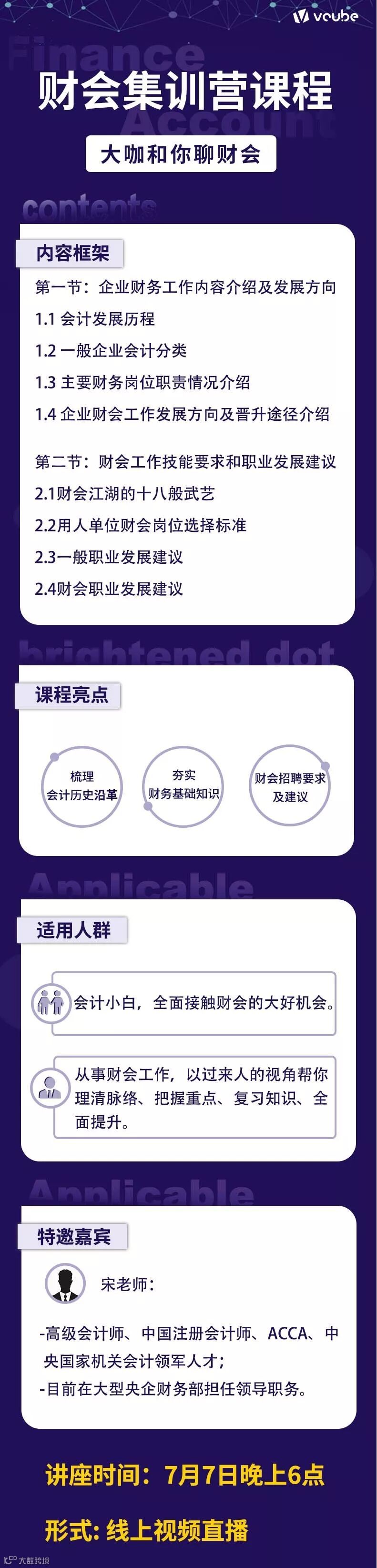 本周六(7月6日)晚7点将推出财会讲座《大咖和你聊财会》(此次为公益讲座,财会集训营系列第一课),课程嘉宾为某央企财务负责人,届时将以直播的形式和大家见面,有问题可以随时和老师直接沟通,你还在犹豫什么?