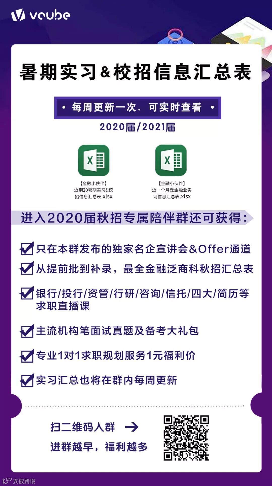 小助手只能又赶紧翻各大名企的官网、联系HR、问问你们的学长学姐,为你们整理了【近期20暑期实习&校招信息汇总表】&【最近1个月泛金融业实习信息汇总表】