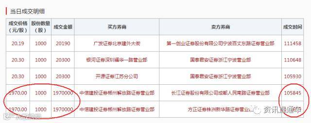 土豪把键盘敲错了,原计划是按照19.70的价格买2000股的,结果小数点没敲上,没敲上,没敲上(我觉得这个说三十遍都不为过),结果变成了1970.00元的价格买2000股;本来计划花掉39400元,结果花掉了3940000元,多花了390万零600;