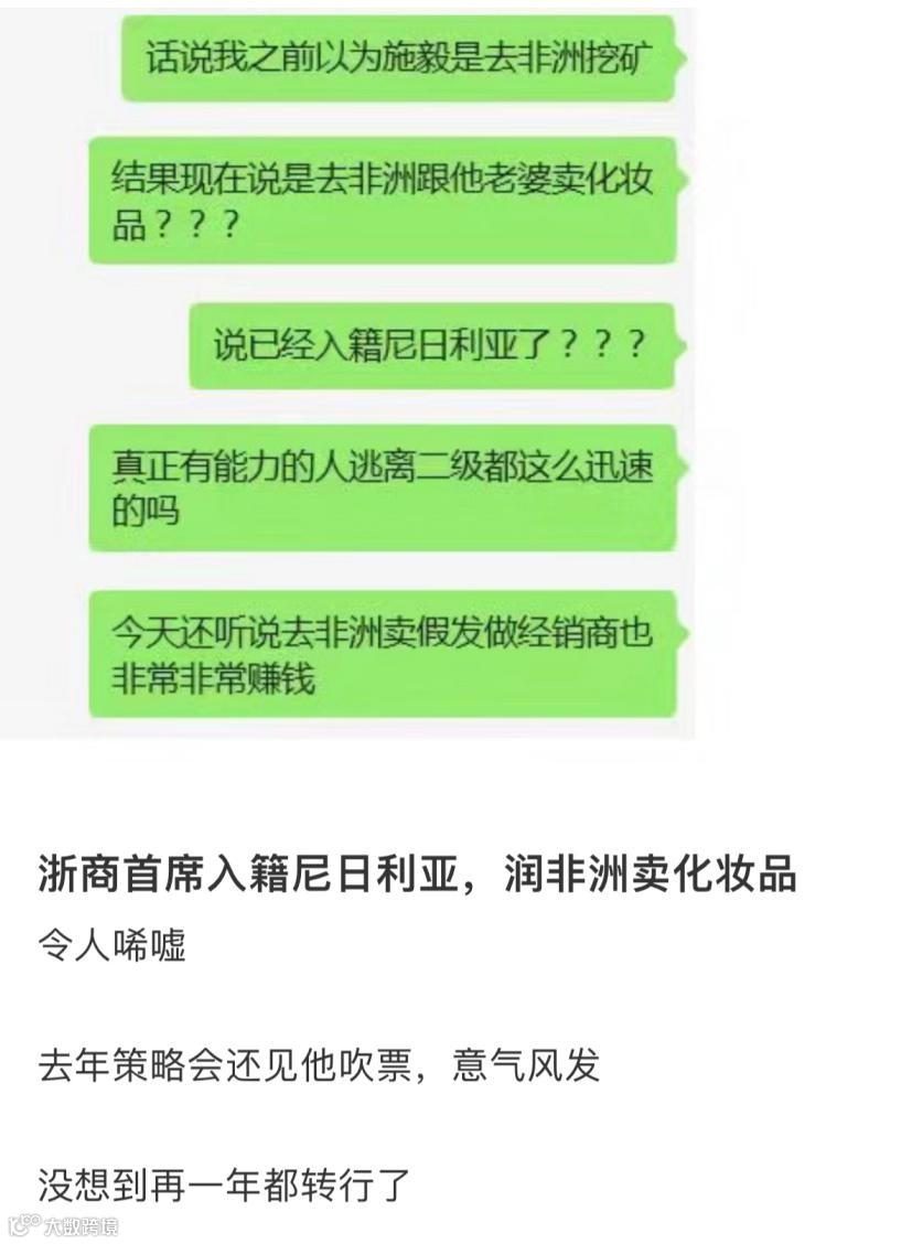不仅如此,施首席还在朋友圈里透露,他已经拿到了尼日利亚的绿卡,且所在公司正在装修过程中。