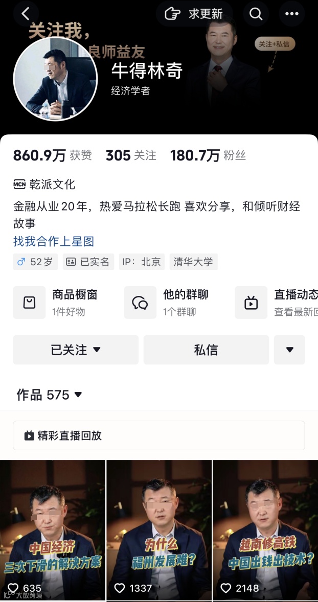 还有原恒泰证券总裁牛壮,年薪曾高达500万,结果不做高管做网红,离职后成了抖音财经博主,一边拍短视频一边直播,目前粉丝已经超过了180万。