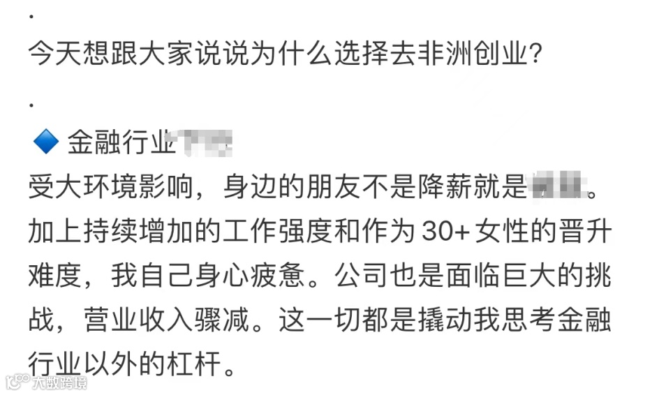 不过,施首席并不算是金融圈打工人去非洲创业的第一人。八妹发现,在小红书上,也有类似的案例。