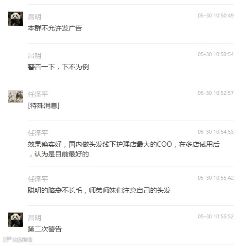 但网红经济学家或许也被当成了微商,群主立马站出来两次警告不能发广告,令人哭笑不得。