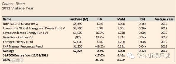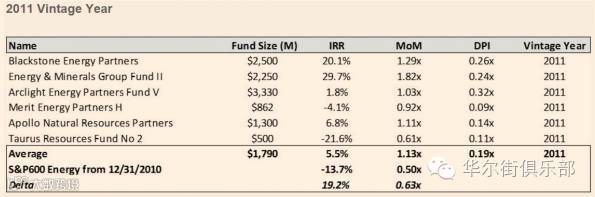 2011年数据显示,私募股权的MoM均值为1.13X,DPI为0.19,因此,预期未分配回报为初始投资数额的0.94X,为DPI的5倍左右。相比而言标普指数显示,上市能源公司MoM为0.50X,大劣于私募股权表现。