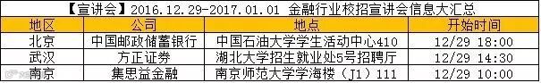 【宣讲会】2016.12.29-2017.01.01金融行业校招宣讲会信息大汇总