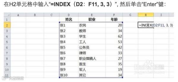 =Index(查找的区域,区域内第几行,区域内第几列)