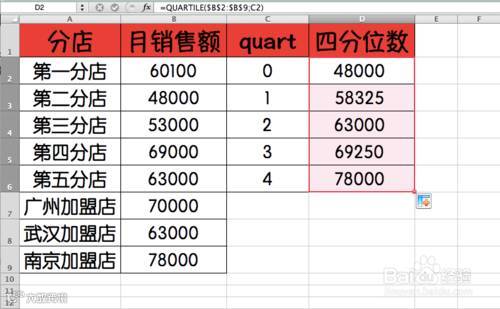 =Quartile(指定区域,分位参数)