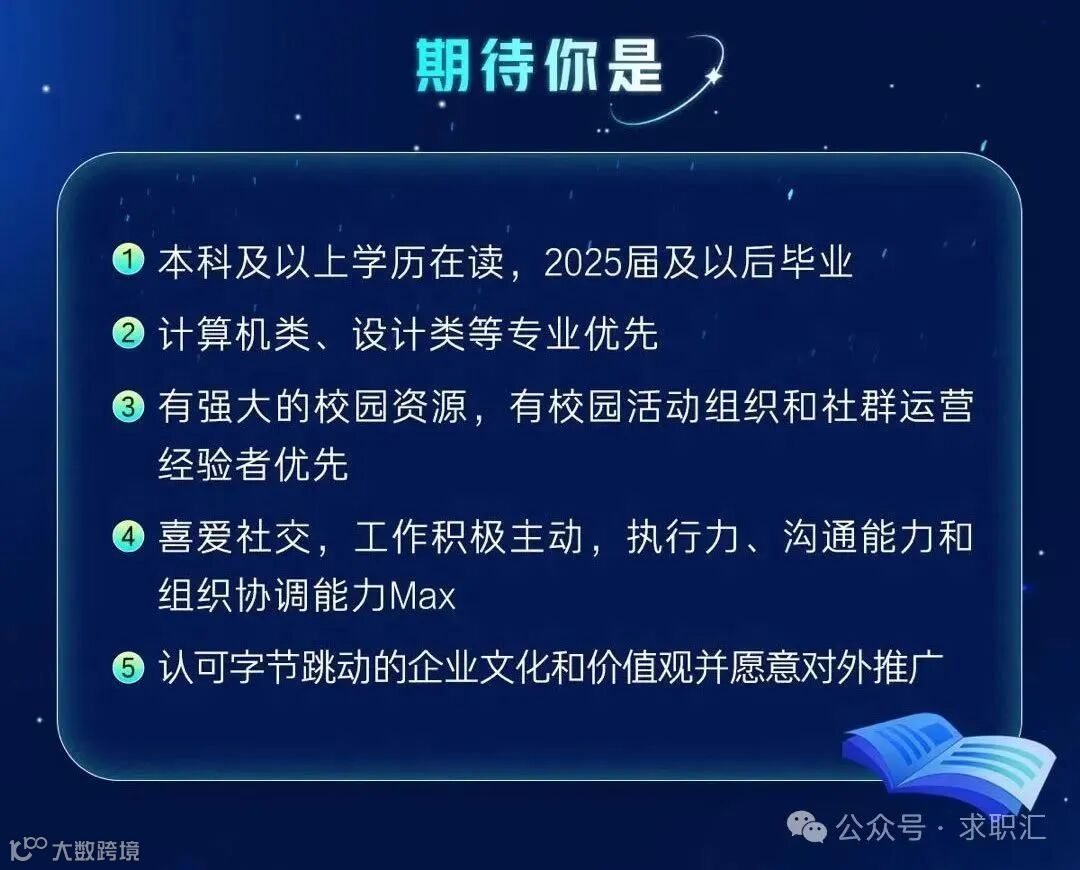1、本科/研究生(24届),24届本科已保研或出国者优先考虑,专业不限,工作日全职实习;