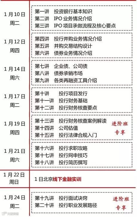 投行六期卓越培训课程表