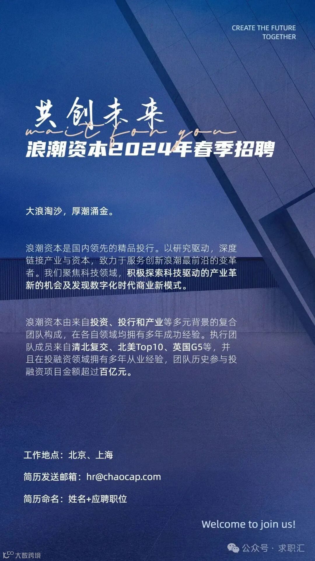2、知名投行或基金5年及以上工作经验,或相关产业领域5年以上从业经验;