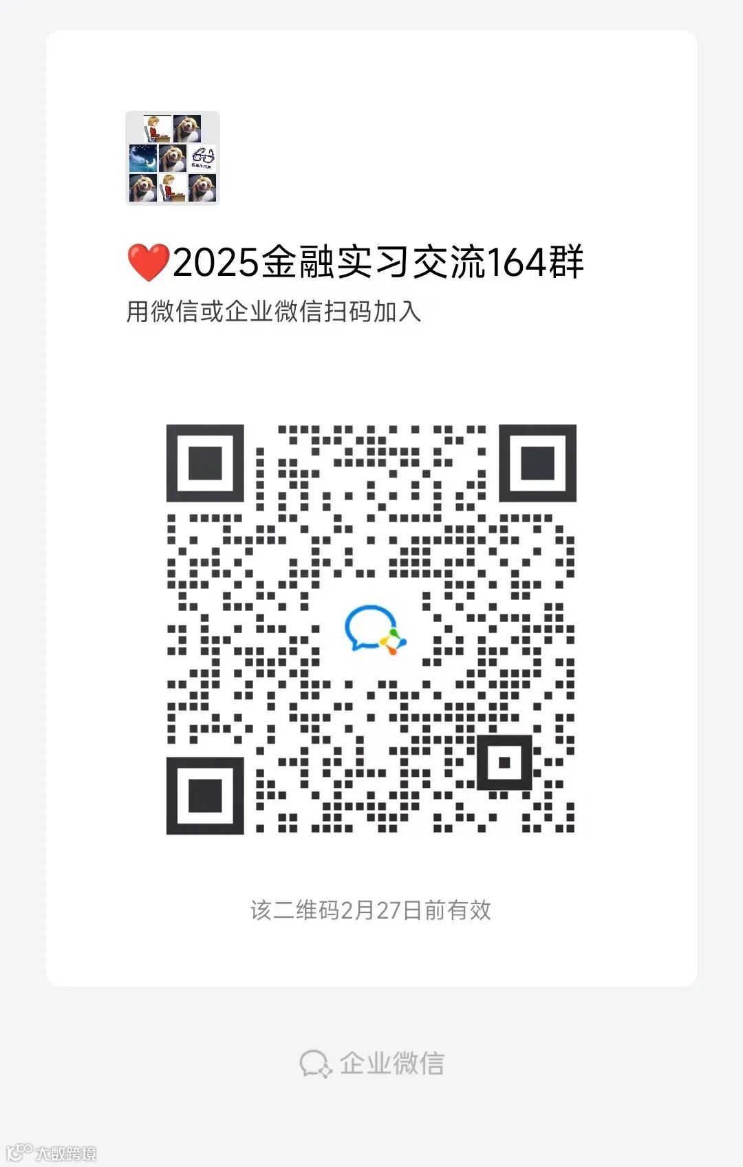 金融小伙伴决定为大家免费提供寒假实习群,扫码添加即可进群哦!