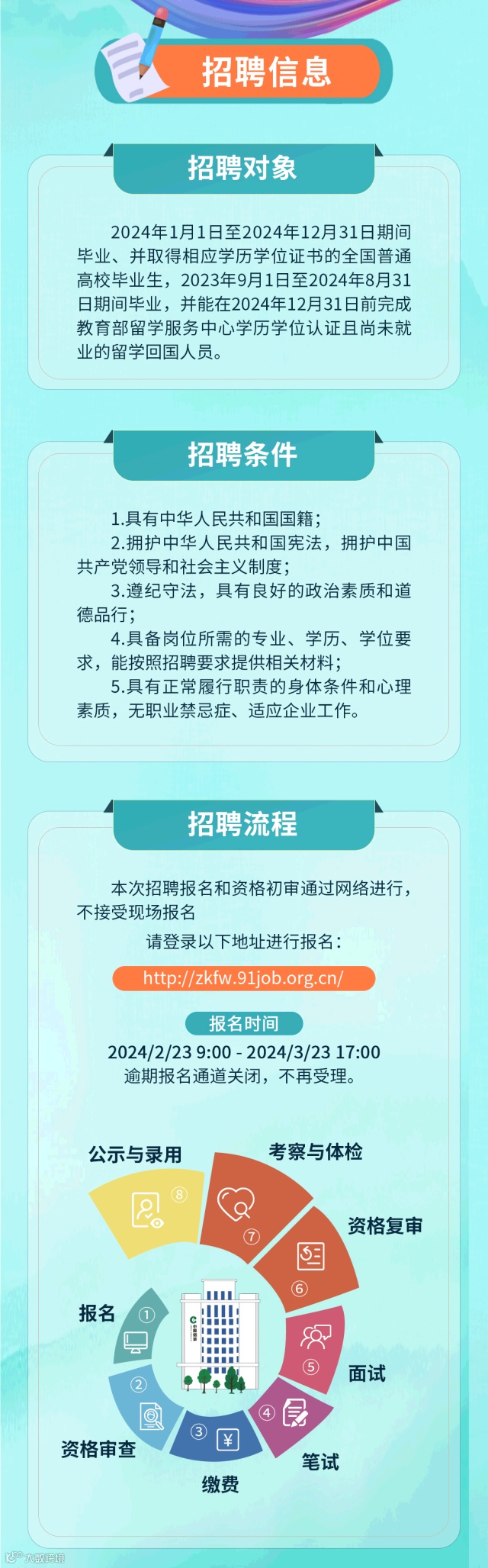 招聘对象为2024年全国高等学校应届毕业生(含两年择业期内未落实工作单位的高校毕业生,不含各类委培生、定向生)。应聘人员毕业时须取得学历学位证书,应聘人员需使用获得的最高学历、学位以及最高学历所对应的专业报名(应届高校毕业生使用即将获得的最高学历、学位以及最高学历所对应的专业报名)。京内生源指已具有北京市常住户口的报名应聘人员,不含北京高校集体户口。