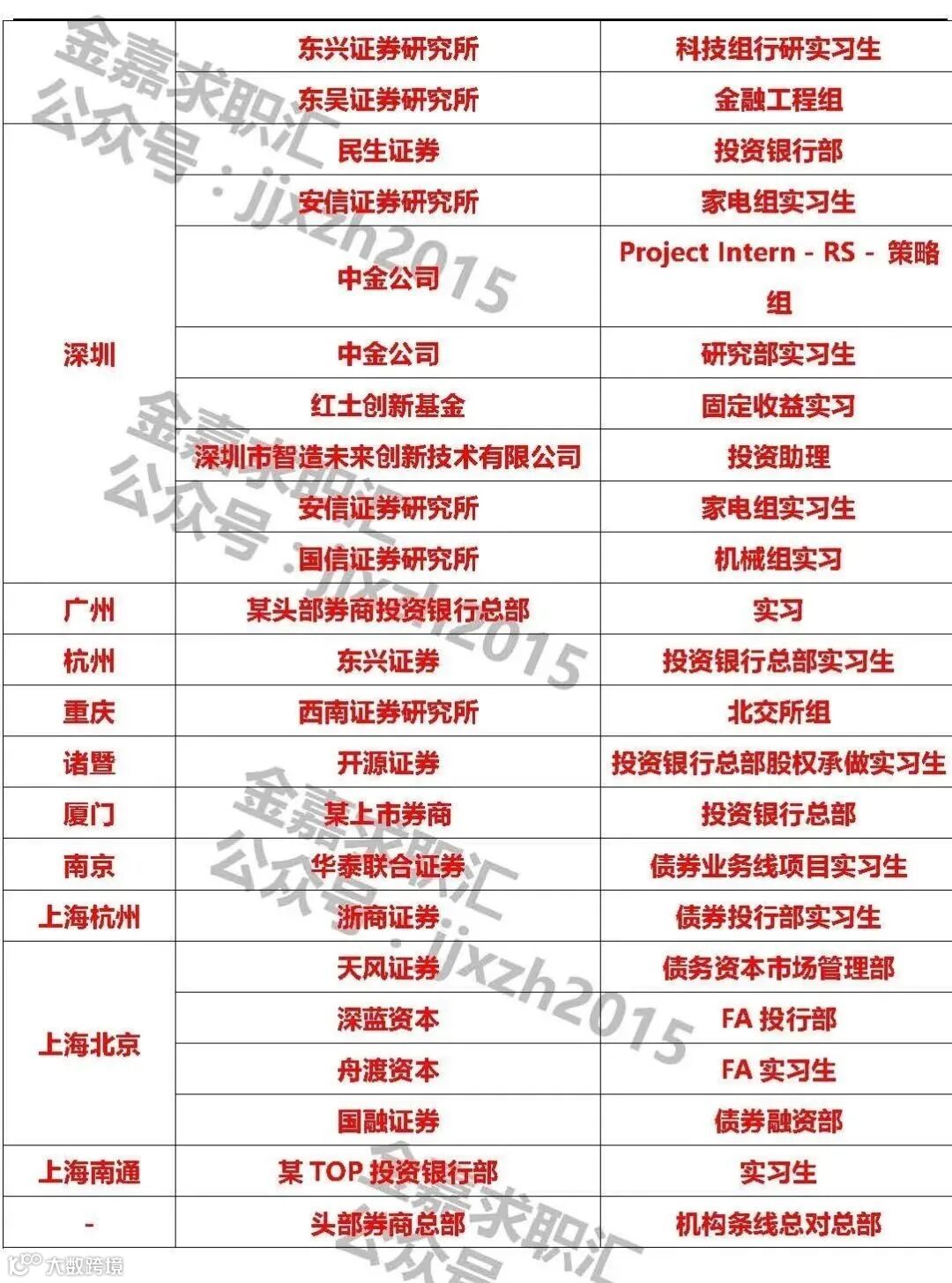 1、重点大学理工科或商科类大四保研/留学已录取/研究生(2025年及以后毕业,实习表现优异者有留用机会),有券商实习经验者优先,能力优秀且时间充裕的低年级学生也非常欢迎;