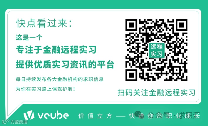 金融小伙伴致力于搭建一个金融垂直领域职业信息分享和交流公益平台,通过持续不断的公众号推文和线上线下活动,提供及时、全面、高效的行业招聘信息和职场提升经验。目前,我们已吸引了超过100万粉丝,在海内外金融学子和在职人士中均享有盛誉。