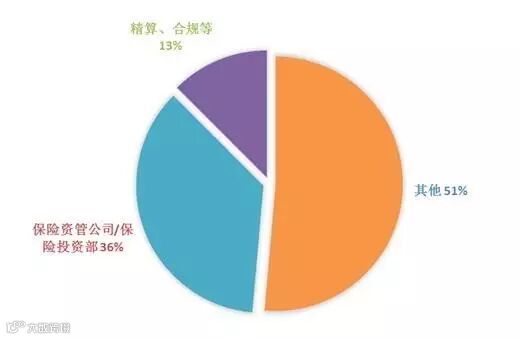 在参与本次调查的签约保险公司的应届生中,保险资管公司/保险投资部占比36%,精算、合规等中后台部门占14.29%。本次调查结果与去年相比,保险资管就业占比下降6%,其余比例持平,似乎显得保险资管已经过了之前保险资金运用放开后的快速扩张期。