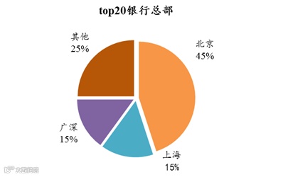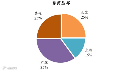 在金融小伙伴《中国金融业实习年度报告2016》中,曾经分析过券商、基金、银行机构总部区域分布,具体如图1-6、图1-7和图1-8所示,北上广深的地理优势明显。