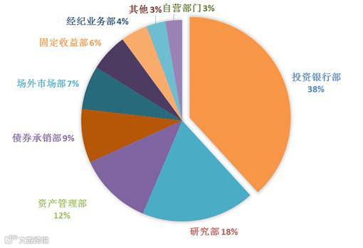 在参与本次调查的签约证券公司的应届生中,投资银行部的比例第一,高达38%;研究部(含研究员及机构销售)次之,占比18%;资产管理部占比12%,债券承销部占比9%;场外市场部占比7%;其余如图2-2所示。本次调查结果与2015年基本相同,投行部占比下降3%,研究所占比略降1%,资管部门占比上升2%,基本呈持平状态。