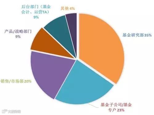 在参与本次调查的签约公募基金的应届生中,研究部占比35%,基金子公司/基金专户占比23%,销售/市场部占比20%,产品/战略部门占比9%,后台部门(基金会计、运营TA)占比9%。