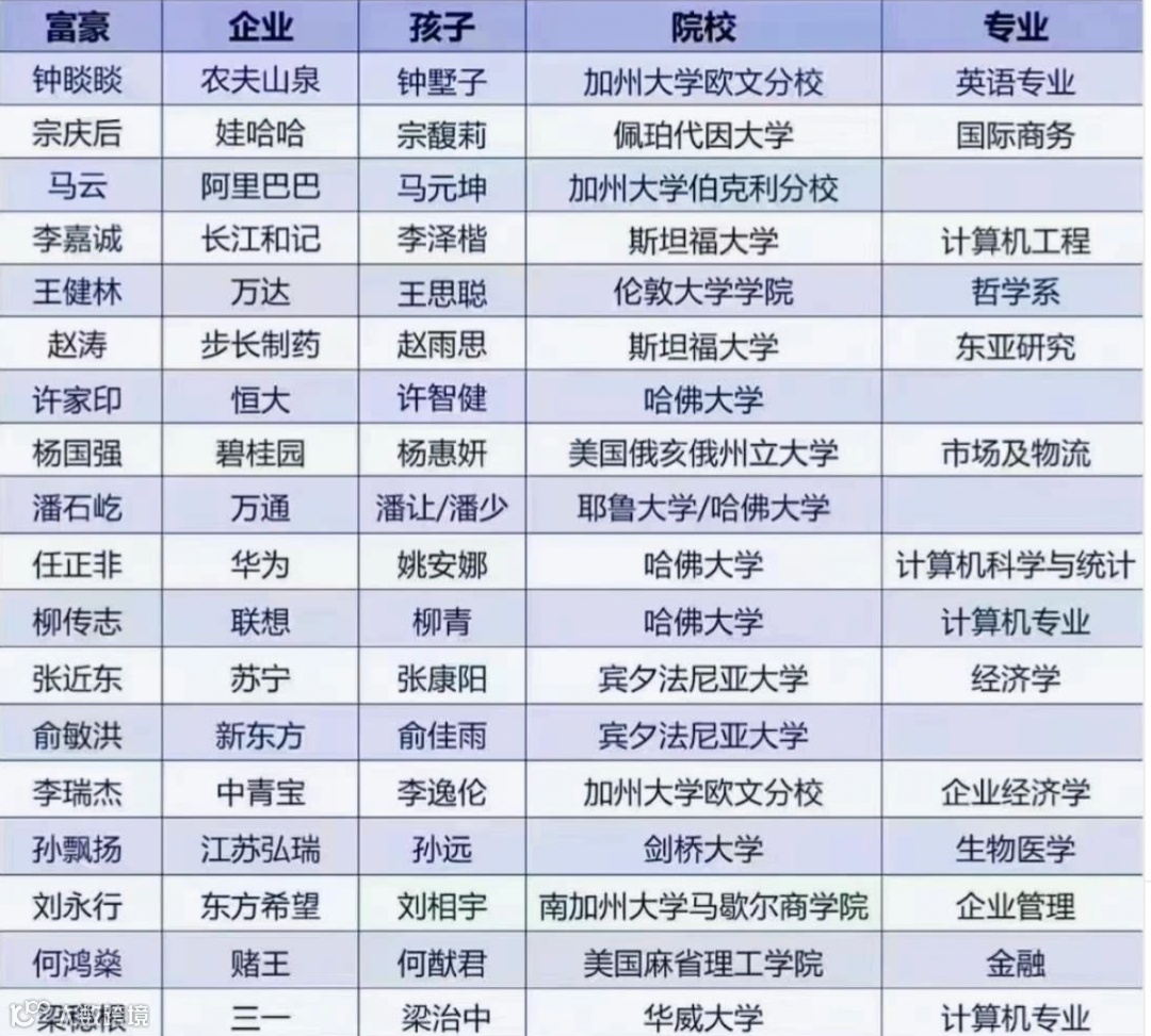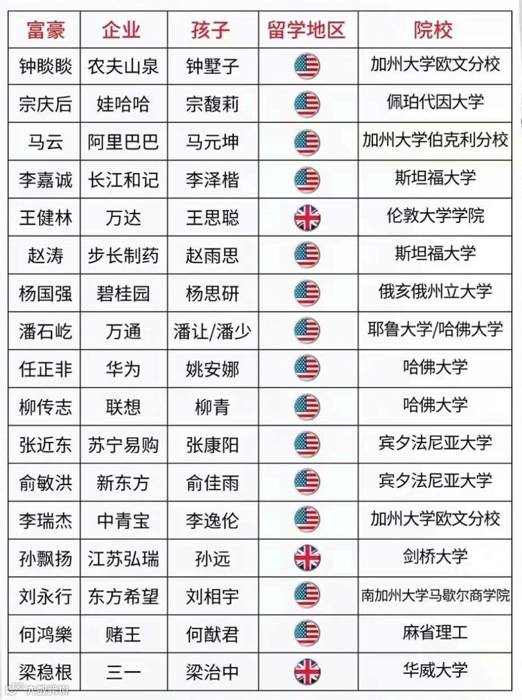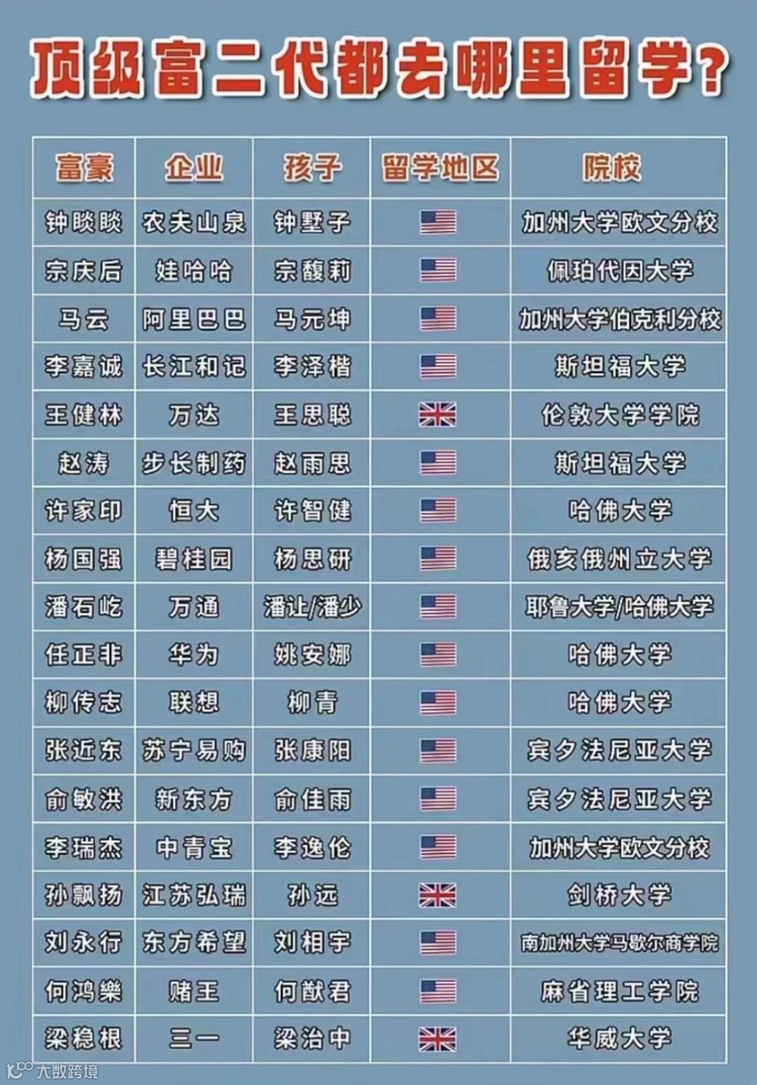 不过哈佛大学确实是其中选择比较多的,潘石屹三儿子、任正非女儿、柳传志女儿,选择的都是哈佛大学。