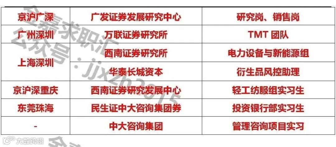 注:研究领域全方位覆盖宏观经济、策略研究、金融工程、固定收益和28个行业;销售岗包括机构销售、股票销售等岗位。具体实习岗位,经面试后统一安排(可以学生个人意向为主要导向),期待加入!