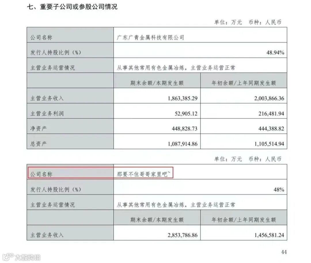 广新集团此前披露的公司债券半年度报告中就被“金融侦探”发现了乌龙:在集团半年报第44页,一公司名称被写成“那要不住哥哥家里吧~”。