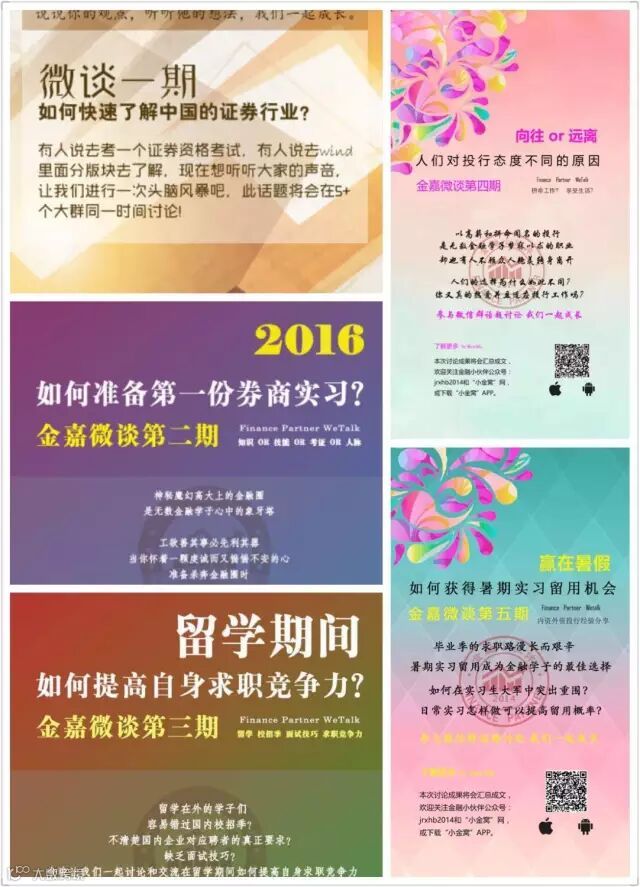 2、资讯大全:实习、校招、社招信息海量放送,每日晨报推送最新行业新闻,更有金嘉系列全资讯、投行社、研究院、资管汇、咨询社大量原创文章,深度剖析行业热点趋势,全面解读行业政策实例;