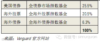 一类是以Vanguard目标退休系列FOF为代表的基本资产配置模型。例如Vanguard Target Retirement 2025基金的投资组合只持有4只子基金,秉承Vanguard一贯的被动化投资,把费用降到最低的投资理念。