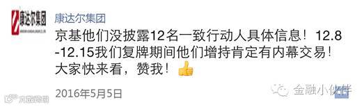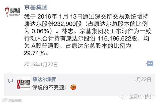 5月5日,康达尔再次出手,发布公告再次指责京基集团没有披露12名林志一致行动人的具体信息,且认为京基集团在2015年12月8日至12月15日康达尔重组失败复牌期间的增持涉嫌内幕交易。