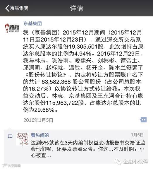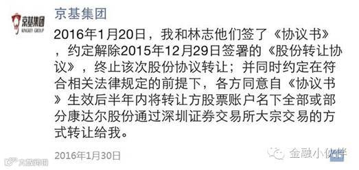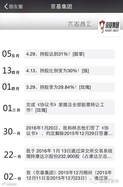 2016年1月份,京基集团发布公告,将12月增持的康达尔股份交易披露。