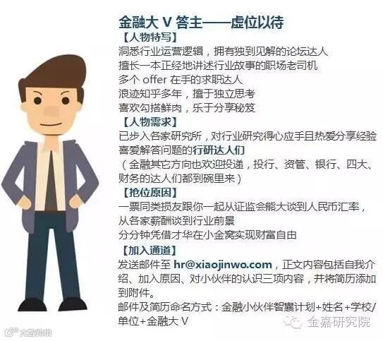 专注金融教育与职业发展,构建垂直金融O2O社区,涵盖金融招聘、职场培训、金融社交、专业问答、专题讲座等。平台旗下拥有金融小伙伴、金融嘉、小金窝三大品牌,拥有超15万会员,覆盖超过20个省市和主要国家,在海内外金融学子中享有盛誉。众多精彩参见网站:www.xiaojinwo.com;APP下载:http://t.cn/RGHwVcb。