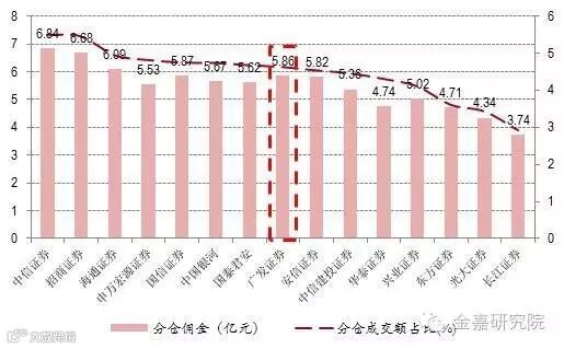 广发研究所2015年公募分仓佣金行业排名情况