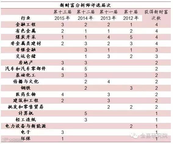 广发证券2012-2015年新财富分行业排名情况