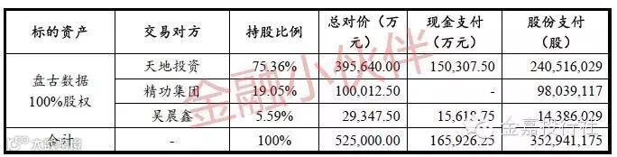 对于盘古数据原股东吴氏父子,天地投资向其转让盘古数据5.59%股权用于偿还2.56亿元(本金+利息)欠款,按此数据计算对应估值为45.8亿元,低于本次交易估值52.5亿元,吴氏父子亦可从中套利,因而也乐于接受此抵债方案。