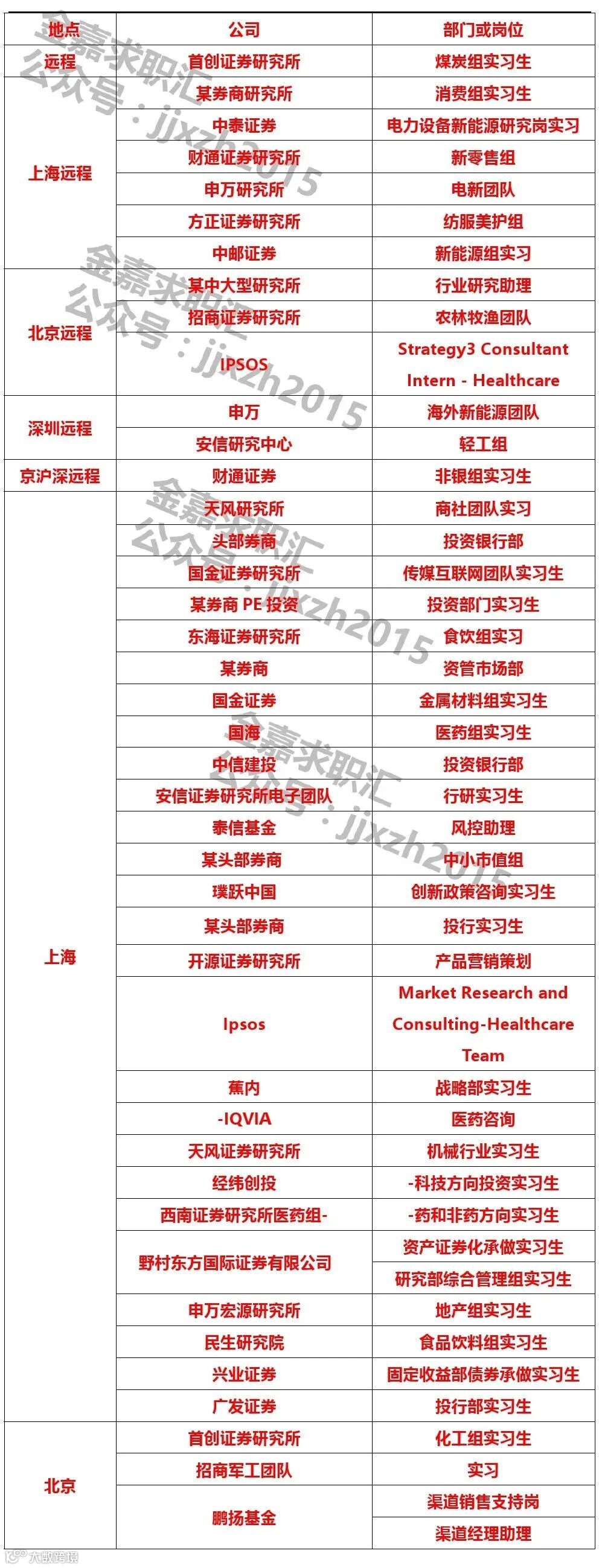 1. 在读研究生,时间充裕的大四本科生也可;有券商实习经验优先;有一定金融财务基础,掌握经济学、会计学、金融学的基础知识;