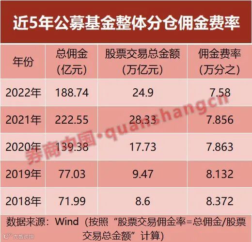 然而,随着A股市场逐渐向机构化发展,公募基金的交易量也大幅增加,券商之间的竞争也加剧,佣金费率逐渐下降至万8以下。