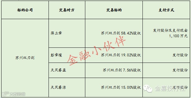 上市公司以发行股份及支付现金的方式购买苏州双刃剑100%股权,具体方式如下: