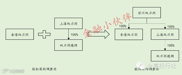 上海双刃剑、香港双刃剑和双刃剑德拥三者经营范围均涉及体育营销,通过对比调整前后的股权架构安排可知,在标的资产交易前设立苏州双刃剑这样一个控股平台,可以通过只收购苏州双刃剑就实现控股上海双刃剑、香港双刃剑和双刃剑德拥三家公司。此次架构调整使得资产交割办理更加便利,并且避免了收购交易后上市公司与蒋立章、彭章瑾夫妇直接控制的其他企业间的同业竞争问题,从而保护交易后中小股东的利益。